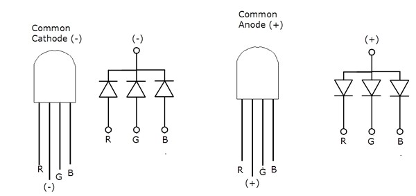 Red, Green Blue (Kırmızı, Yeşil, Mavi) renkli 3 adet LED’i kendi içinde tek parça olarak bir arada bulunduran LED’lerdir. 4 adet bağlantı ucu vardır.